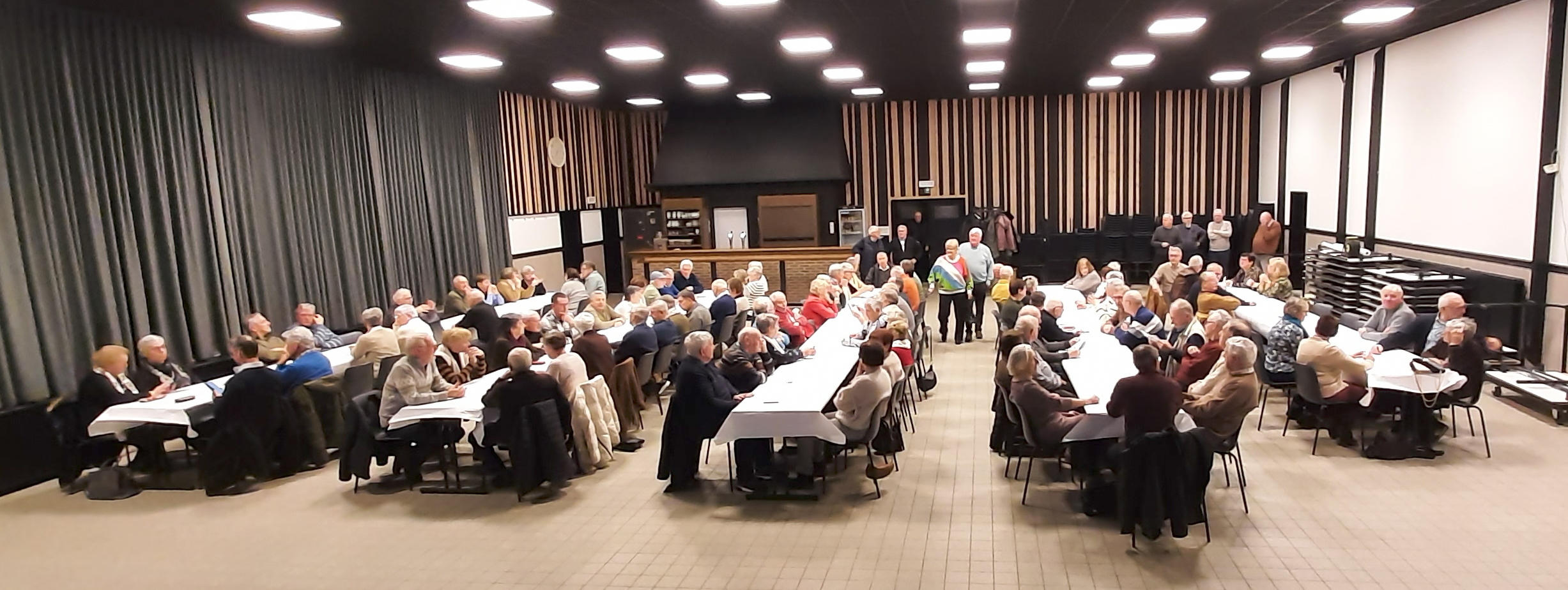 Daarna was het tijd om eens terug te blikken op de activiteiten in het jaar 2025. Velen zagen zichzelf terug op het grote scherm tijdens de reportage die afgespeeld werd. Het bestuur en partners hadden gezorgd voor lekkere hapjes en drankjes. En aan het rumoer in de zaal was te merken dat de leden va, deze samenkomst genoten hebben.